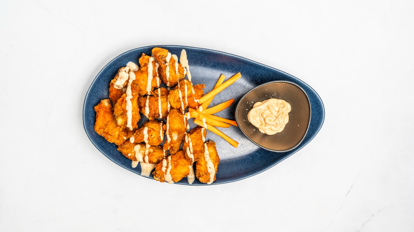 Buffalo kuracie krídelka, marinované v BBQ marináde 9ks, BBQ omáčka, Samuraj, Zeleninové crudité alergény: 10 -